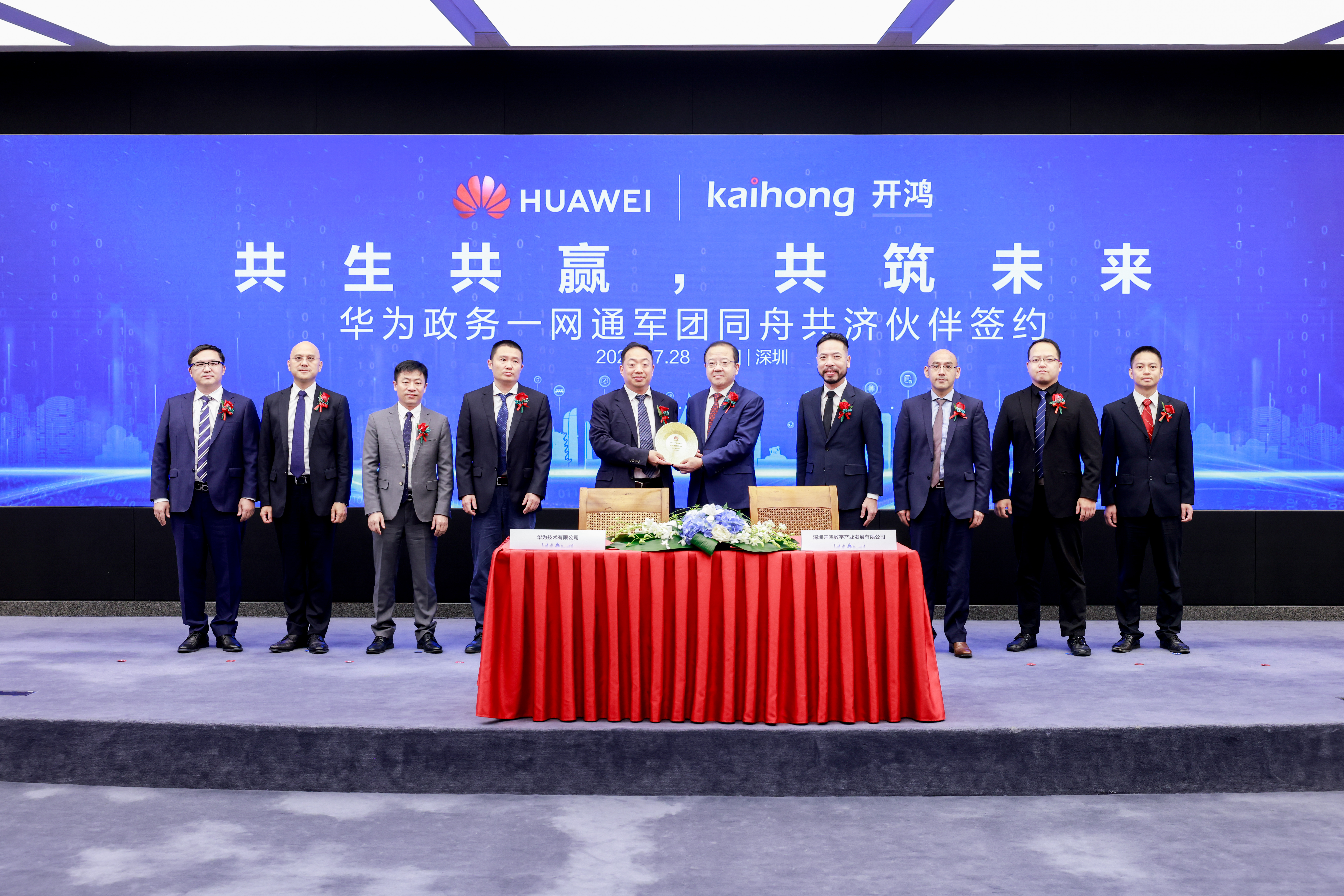 近日,深圳开鸿数字产业发展有限公司(简称“深开鸿”)与华为技术有限公司(简称“华为”)签署了政务一网通军团同舟共济合作伙伴协议。本次签约主题是“共生共赢、共筑未来”,双方将在政务与城市数字化领域,发挥各自优势,构建行业领先的解决方案和服务能力,携手促进城市数字化发展,实现商业共赢。