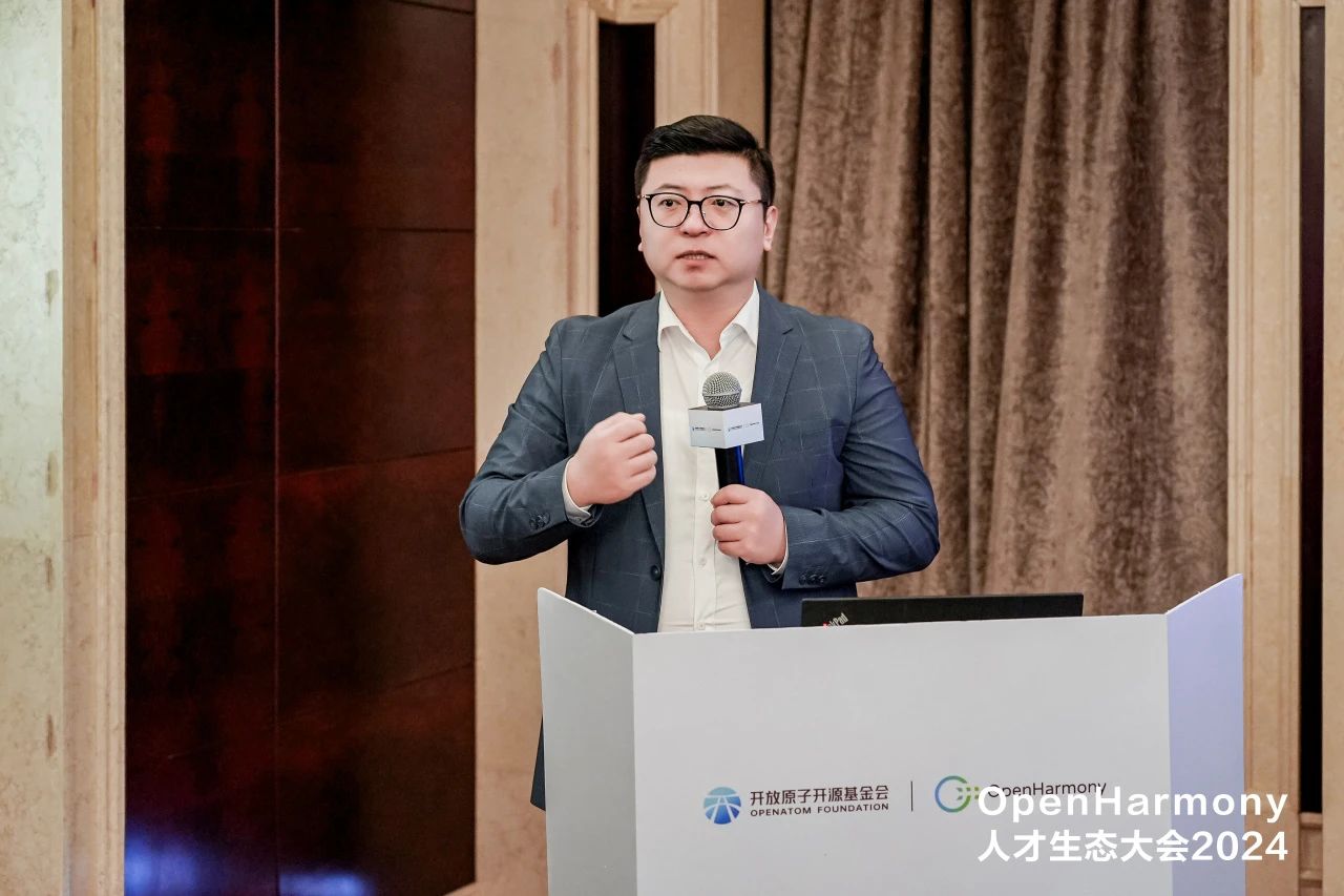 在OpenHarmony南向生态社区发展论坛上,深开鸿教育系统部解决方案总监于辰光发表了题为《育才聚英,构筑OpenHarmony产业发展源动力》的主题演讲,分享了深开鸿在OpenHarmony人才培养领域的独特见解与实践成果。