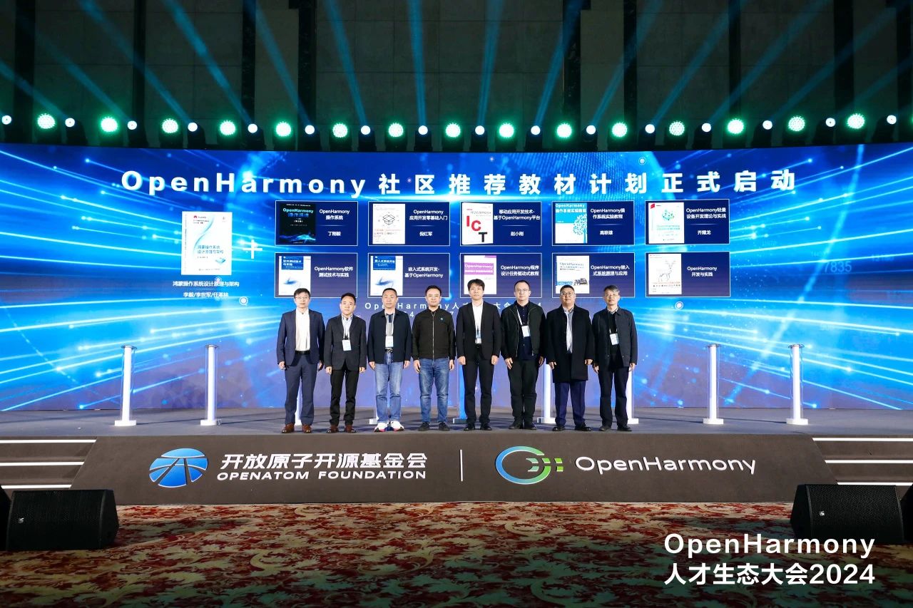 为了表彰和激励对OpenHarmony人才培育作出贡献的单位和个人,大会举办了OpenHarmony人才认证激励计划发布仪式、OpenHarmony社区推荐教材计划启动仪式以及培训伙伴等授牌仪式。