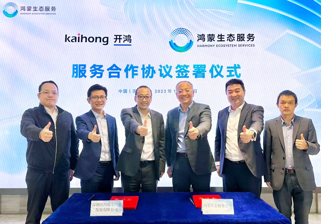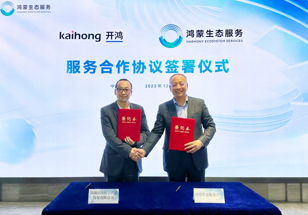 12月29日, 深圳开鸿数字产业发展有限公司(简称“深开鸿”)与鸿蒙生态服务(深圳)有限公司(简称“鸿蒙生态服务公司”)正式签署合作协议,深开鸿高级副总裁、市场体系总裁解伟俊,鸿蒙生态服务公司总经理杜金彪等相关领导出席仪式。双方将携手合作,加强资源互联互通,共同开拓开源鸿蒙应用场景和市场空间,推动开源鸿蒙在各个行业和领域的应用和发展。