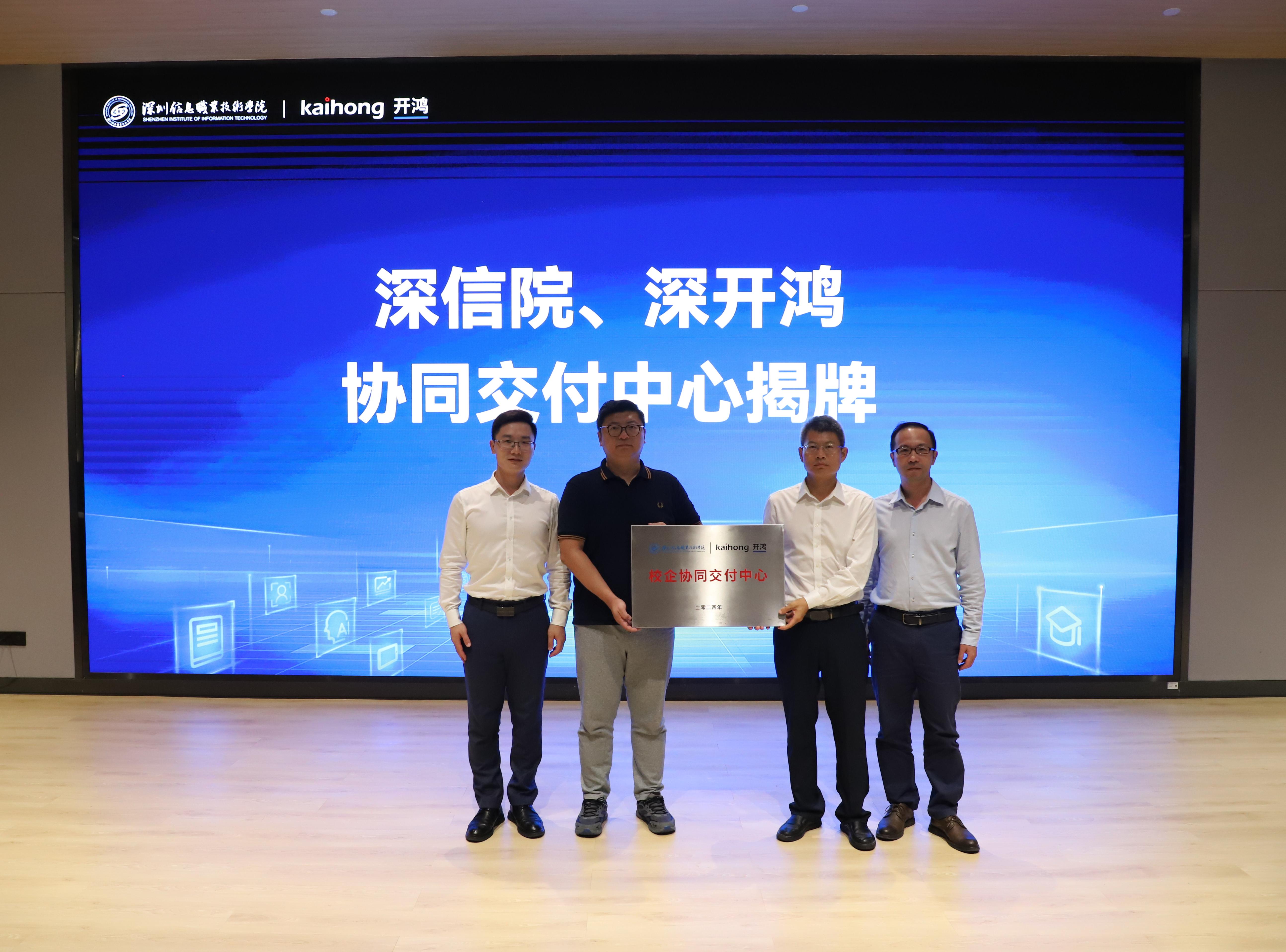 深信院与深开鸿共同举行了校企协同交付中心的揭牌仪式,标志着双方在推动产教融合、培养高质量技术人才方面迈出了坚实一步。该中心旨在构建一个紧密结合教学与产业实践的平台,通过引入企业的真实项目和行业资源,促进学生将课堂所学的理论知识应用于实际场景,提升实践能力和创新思维。协同交付中心不仅为学生提供了实战项目的机会,还能让他们深入了解行业需求和最新技术发展趋势,为未来进入职场做好充分准备。