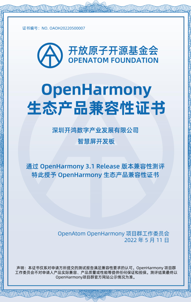 近日,深圳开鸿数字产业发展有限公司(以下简称“深开鸿”) 多款产品完成了OpenHarmony3.1Release版本的适配,包括KaihongOS、KaihongOS Things 两款软件发行版产品,以及内嵌KaihongOS的KHDVK-3568A、KHDVK-3566B、KHDVK-STM32H743、KHDVK-3861B、KHDVK-8910A五款开发板产品正式通过OpenHarmony兼容性测评。深开鸿以软硬件结合的方式,提供多种产品形态配套技术服务,推动全场景数字化创新升级。