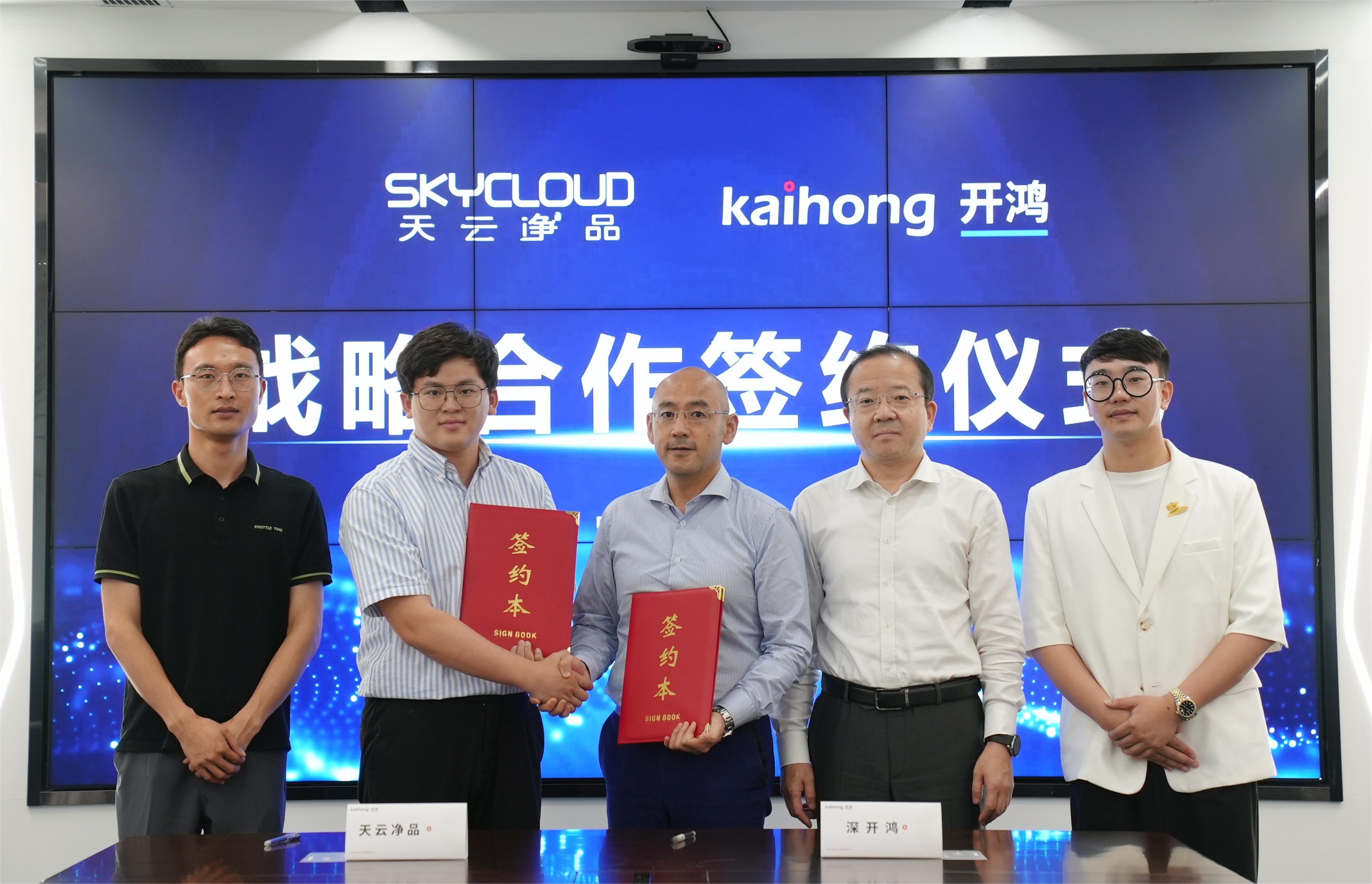 6月1日,深圳开鸿数字产业发展有限公司(简称:深开鸿)与天云净品(深圳)科技有限公司(简称:天云净品)签署了战略合作协议。天云净品创始人、董事长胡荣华,联合创始人、总裁李冉,联合创始人、副总裁范林源,深开鸿CEO王成录、综合BG副总裁刘菁等人共同出席了签约仪式。华强北在线、深圳市电子商会、哈工大校友会等嘉宾见证签约并与深开鸿洽谈生态合作事宜。