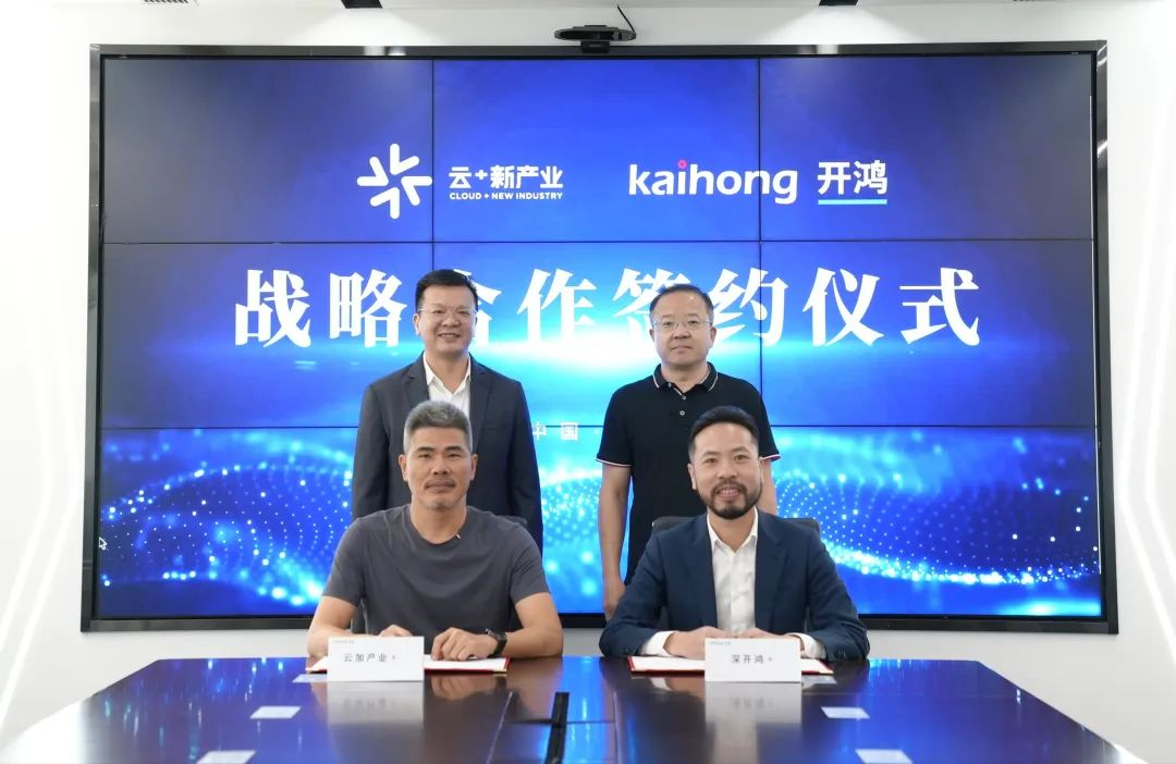 6月26日,深圳开鸿数字产业发展有限公司(简称:深开鸿)与深圳市云加新产业管理公司(简称:云加新产业)签署了战略合作协议。云加新产业董事长黄瑞桥、哈工大知名校友程庆述,深开鸿CEO王成录、总裁周子翔等人共同出席了签约仪式。