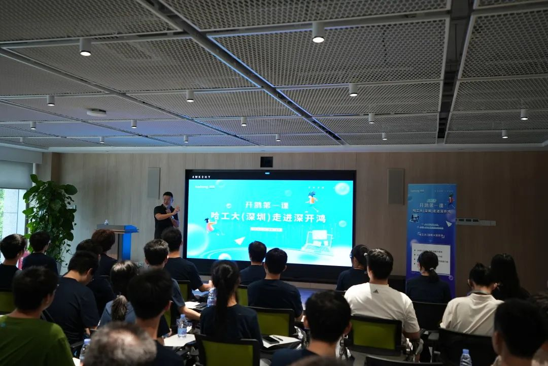 6月26日,哈尔滨工业大学(深圳)(简称“哈工大(深圳)”)计算机科学与技术学院60名学生来到深开鸿进行“开鸿第一课”的学习与交流。深开鸿工作人员带领学生们参观了深开鸿展厅,并进行座谈交流,让学生详细了解了公司的发展历程、 (1+1)×N战略、核心技术和产品创新、人才生态建设及行业落地突破,现场还进行了问答互动。最后,哈工大(深圳)为现场两位深开鸿讲师颁发聘书。