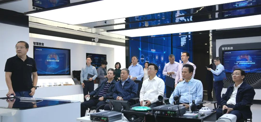 在展厅参观过程中,王成录博士深入介绍了深开鸿基于开源鸿蒙打造的开鸿安全数字底座的技术创新以及在行业的实践应用,重点讲解了其在电力、隧道、楼宇、教育、轨交等领域的智慧实践,并现场进行了KaihongOS机器人、开鸿全场景实验箱、智慧康养等产品和场景的互动演示,展示了深开鸿强大的技术创新和生态建设能力。