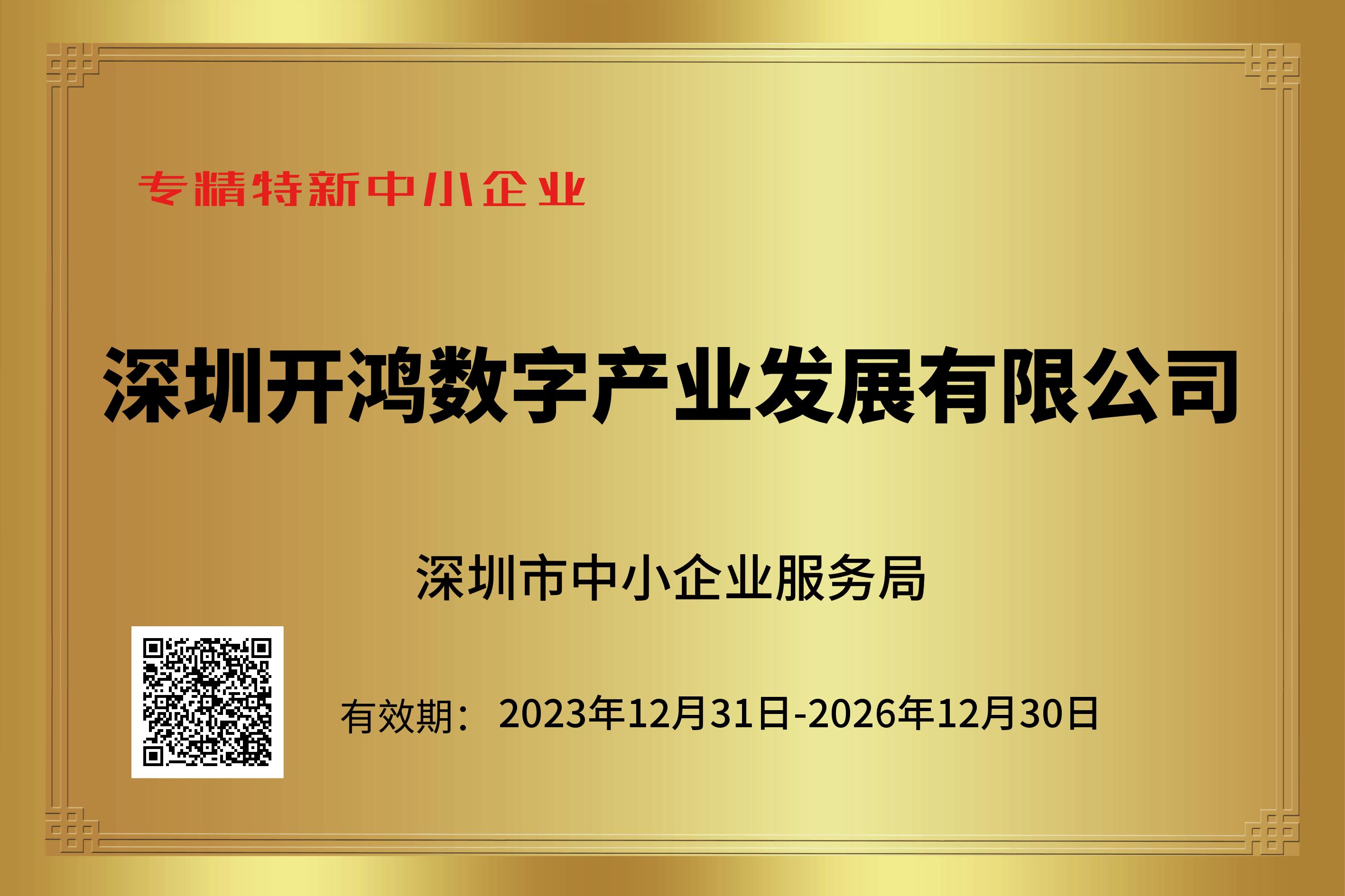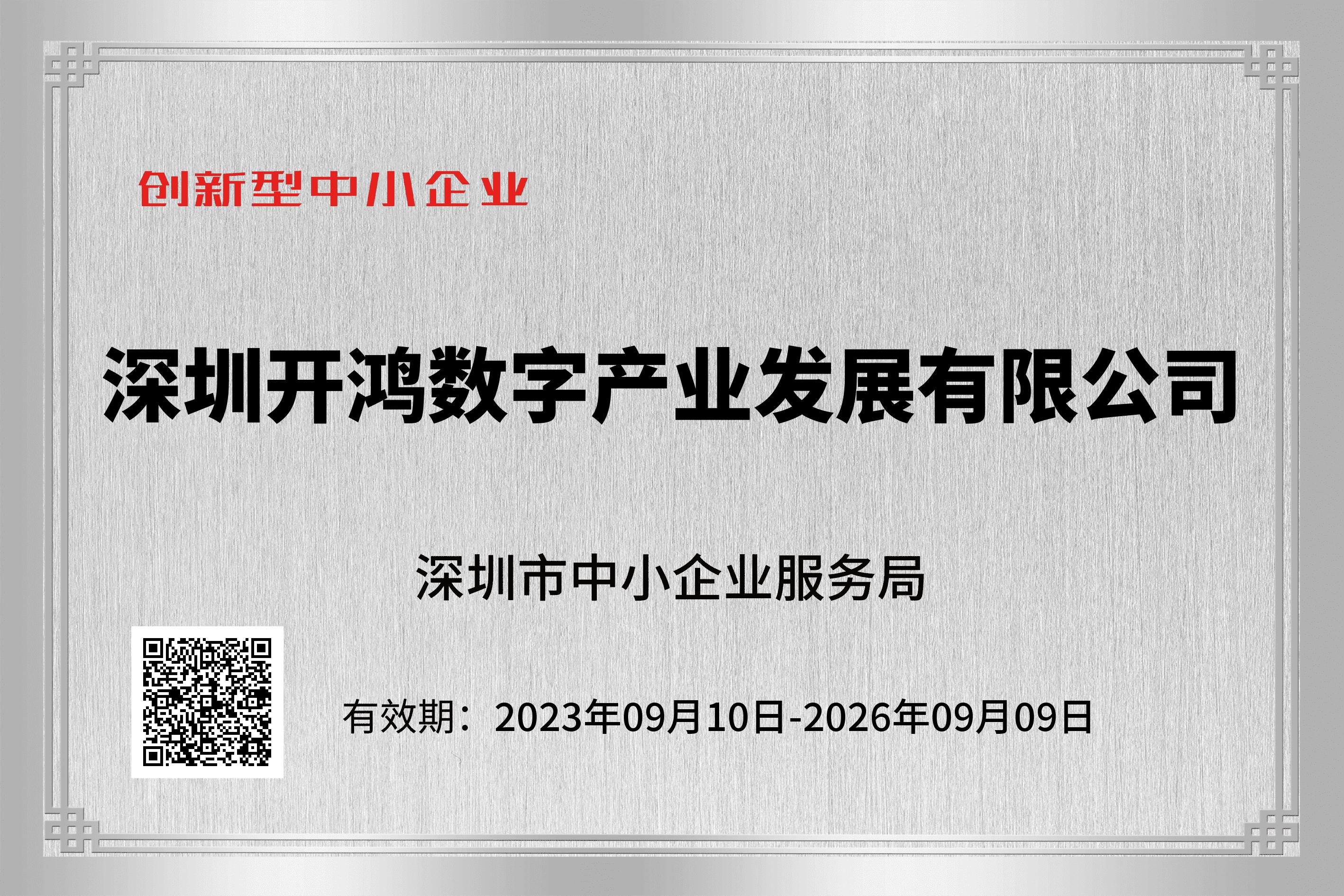 创新型中小企业是指具有较高专业化水平、较强创新能力和发展潜力,在行业细分领域具有影响力的企业,是企业创新能力的 “认证” 标志。深开鸿荣获'创新型中小企业'荣誉称号,意味着其在科技创新、市场竞争力和可持续发展等方面得到了政府、业界及社会的认可与支持,是深开鸿发展道路上的重要里程碑。
