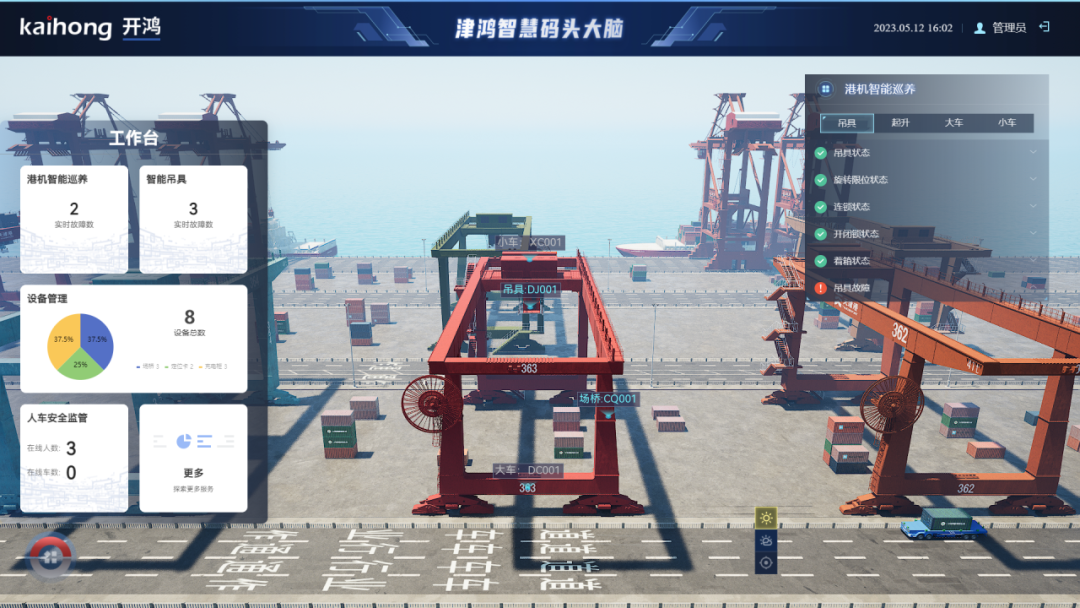 面对传统港机数量大、品牌多、标准不一、故障难知等问题,提升港机数字化与智能化程度成为港口建设的关键。“津鸿”作为港口数字孪生底座,统一标准、统一架构、统一规范、统一平台,将机、车、人、船、货、环等要素全面连接,实现港口各要素数据互通、业务互联。