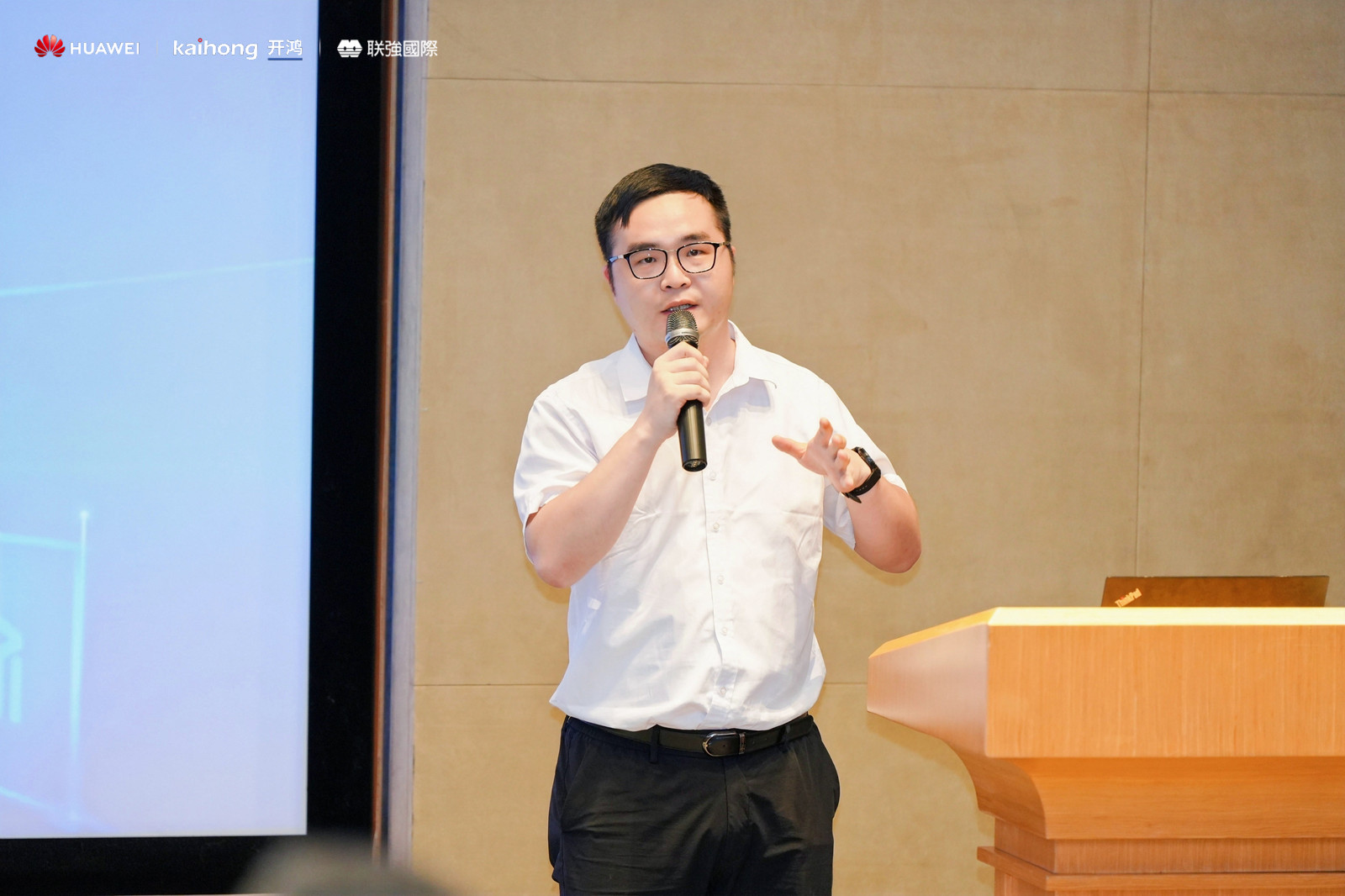 深开鸿教育BG解决方案经理王永生介绍了信息技术创新人才培养实训室解决方案。他提到,深开鸿信息技术创新人才培养实训室采用KaihongOS全场景实验箱及开发板,将企业真实的研发工具引入教学,让教师和学生在真实的生产环境下进行学习和创新探索,全面提升学生及教师使用开源鸿蒙技术在物理层、系统层、网络层以及感知层的工程实践能力。