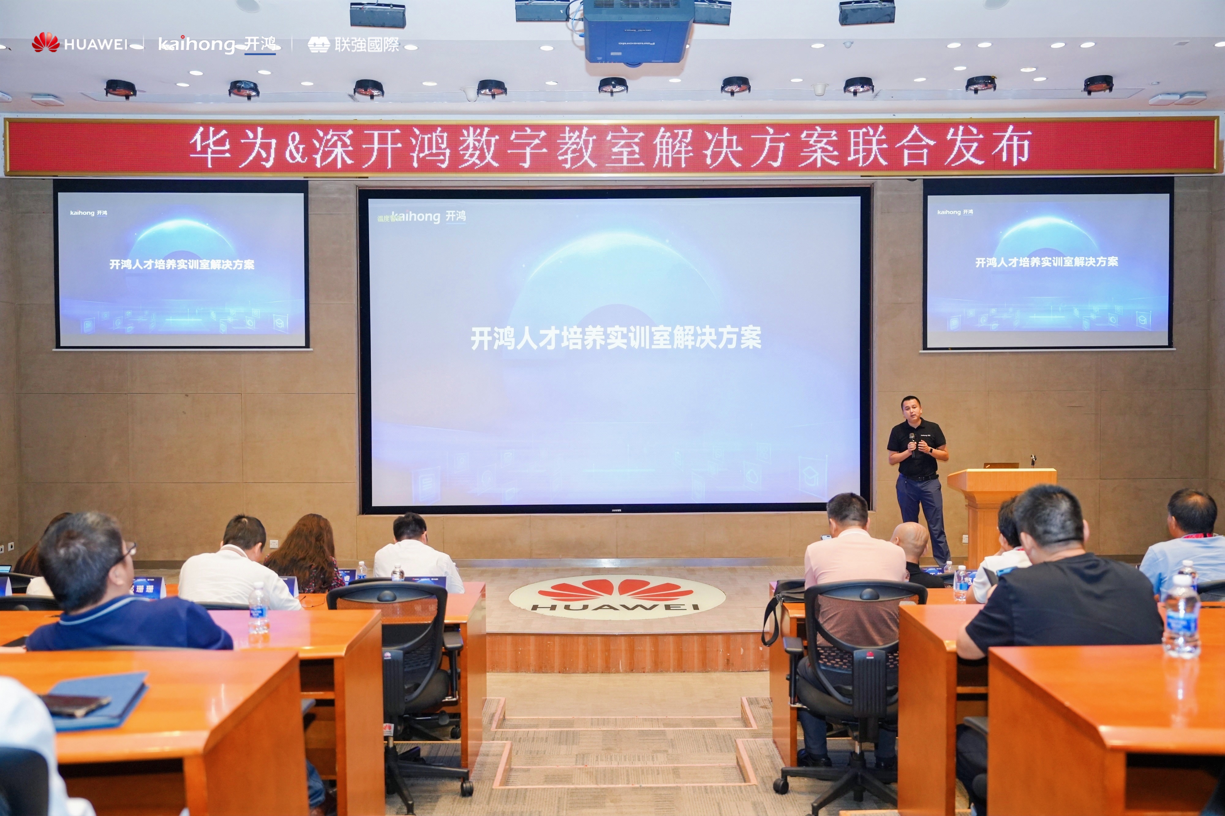 7月26日,深开鸿与华为重磅推出全新联合解决方案——信息技术创新数字教室解决方案,并在华为坂田基地举行了发布会。发布会汇集了教育界合作伙伴、客户、专家等,共同见证开源鸿蒙技术服务智慧教学领域的探索与成果,探讨智慧教育建设,共筑教育鸿链。