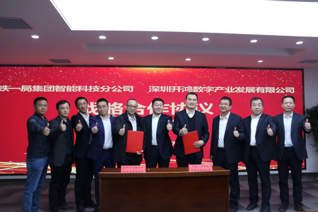 1月17日,中铁一局智能科技分公司与深圳开鸿数字产业发展有限公司签署战略合作协议。深开鸿高级副总裁、市场体系总裁解伟俊、鸿安系统部总经理罗启,中铁一局战略规划部部长吴硕平、高级专家管德鹏、智能公司党总支书记孟峰、总经理袁勇峰出席签约仪式。