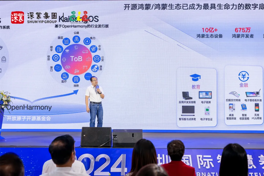 2024年10月25日,在第二届深圳国际智慧养老产业博览会开幕式上,深开鸿与深圳市幸福健康产业(集团)有限公司(简称“深圳幸福健康集团”)联合推出了全国首个基于开源鸿蒙系统的智慧养老产品与解决方案——“幸福开鸿”,双方还正式签署了合作备忘录。此举不仅标志着智慧养老行业迈入了一个崭新的发展阶段,更预示着通过前沿科技的深度应用,将为老年人群体带来全方位、个性化的健康管理与养老服务新体验。此外,深开鸿CEO王成录博士代表出席开幕式并发表演讲,详尽阐述了双方合作的成果及未来蓝图。