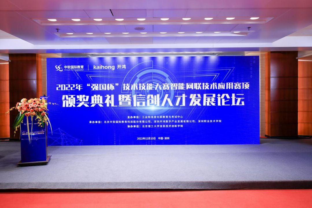 12月10日,2022年度〃强国杯〃技术技能大赛智能网联技术应用赛项颁奖典礼暨信创人才发展论坛在深圳隆重举行。现场汇聚政府领导、高校专家学者、知名企业领袖、行业协会专家、金融投资专家、参赛获奖选手及指导教师等,围绕信创产业人才培养话题,共享思碰撞新盛宴,共启价值发现新空间。活动期间,众位嘉宾共同见证大赛选拔出的获奖学子们,收获殊荣的荣耀时刻。