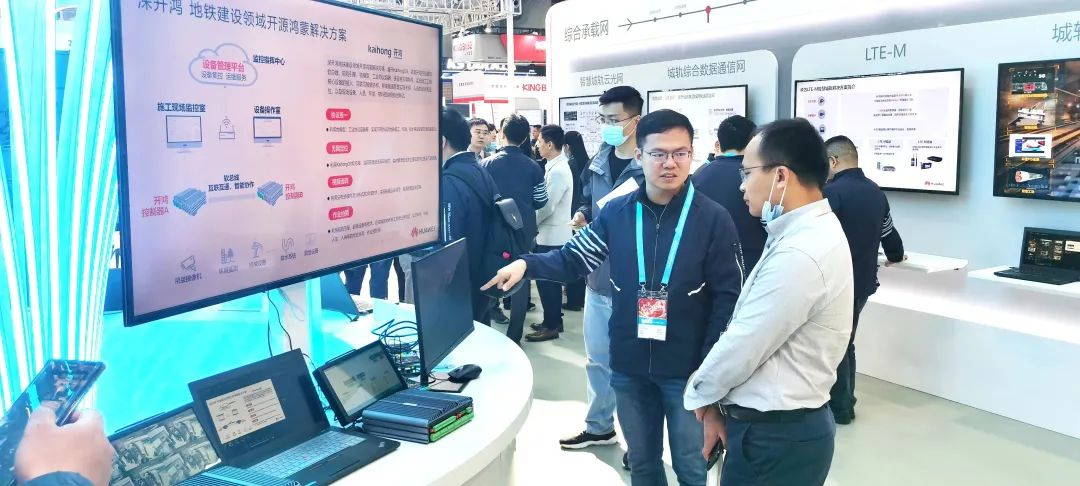此次展会,深开鸿介绍了地铁建设OpenHarmony解决方案,并在展会进行地铁运维数字孪生方案演示,体现KaihongOS和超级设备管理平台在轨道交通建设的创新应用,展现了开源鸿蒙赋能城轨交通高质量发展的应用成果,现场吸引了众多专业观众驻足参观和体验。