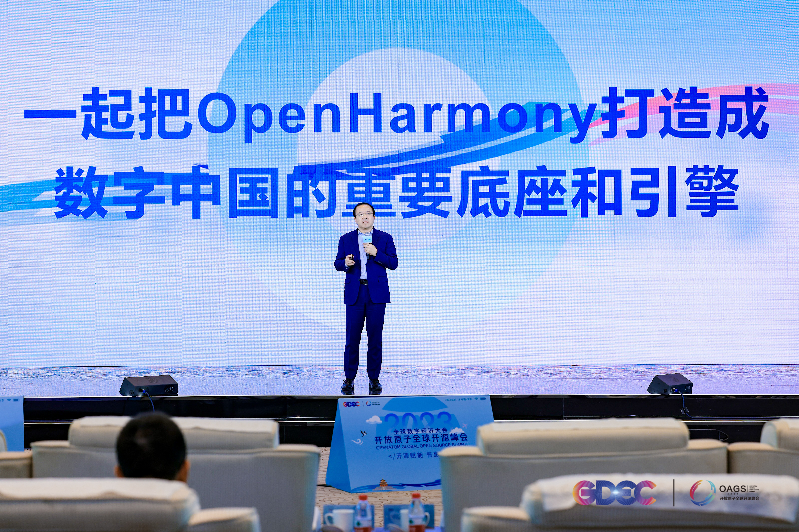 6月11日,在2023开放原子全球开源峰会高峰论坛上,深开鸿CEO王成录博士发表了《共筑OpenHarmony高地 践行数字中国》主题演讲,强调了数据是数字中国演进发展的关键,统一开放的安全数字底座是实现数据资源高效使用、开放共享的技术核心。基于OpenHarmony、开放领先的开鸿安全数字底座可以充分满足千行百业的建设要求,践行数字中国建设。
