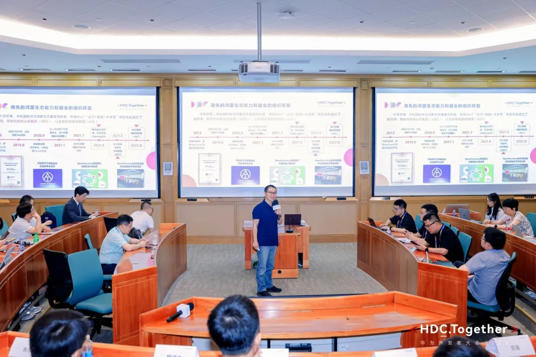 2023年8月5日,在华为开发者大会2023(HDC.Together)鸿蒙生态伙伴媒体发布会上,中软国际智能物联网军团(AIG)产品与研发总裁范强发表《共建鸿蒙生态 梯山航海 中软国际开鸿智联新突破》主题演讲,从城市数字化、行业数字化、产品数字化等角度,阐述中软国际与深开鸿基于KaihongOS的软硬件产品及开鸿安全数字底座在各行业场景的应用创新成果。