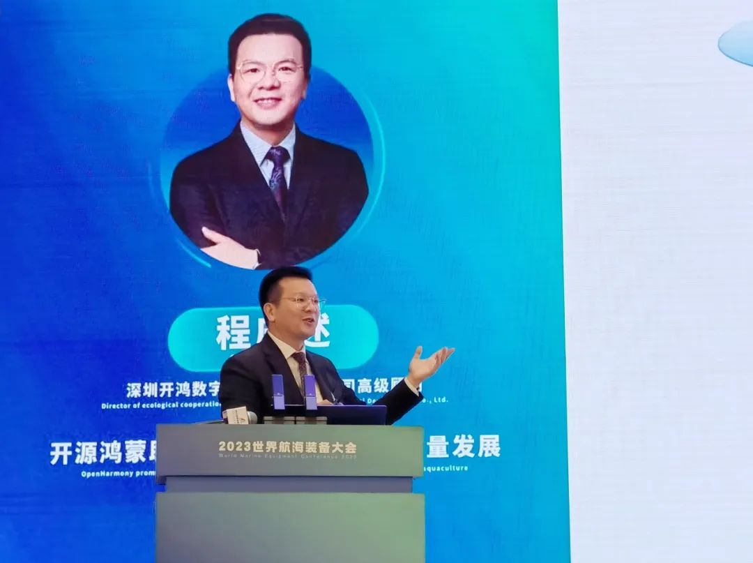 作为智慧海洋的创新推动者,深开鸿受邀出席此次大会,携领先产品和解决方案亮相同期举办的中国海洋装备博览会“新时代十年成果展”。深开鸿高级顾问程庆述出席此次大会并带来《开源鸿蒙助推深远海养殖健康高质量发展》的主题演讲,聚焦国家创新发展战略和海洋经济发展热点,为深远海养殖产业建言献策。