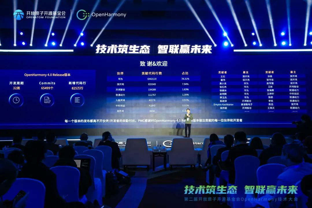 大会现场,OpenHarmony4.0版本如期而至。深开鸿深度参与OpenHarmony4.0版本的共建,包括编译工具链优化、蓝牙框架整改、安全整改、协议增强和优化、arkui基础组件增加或增强等。此外,深开鸿还参与4.0版本的开发工具、兼容性、稳定性方面的共建。