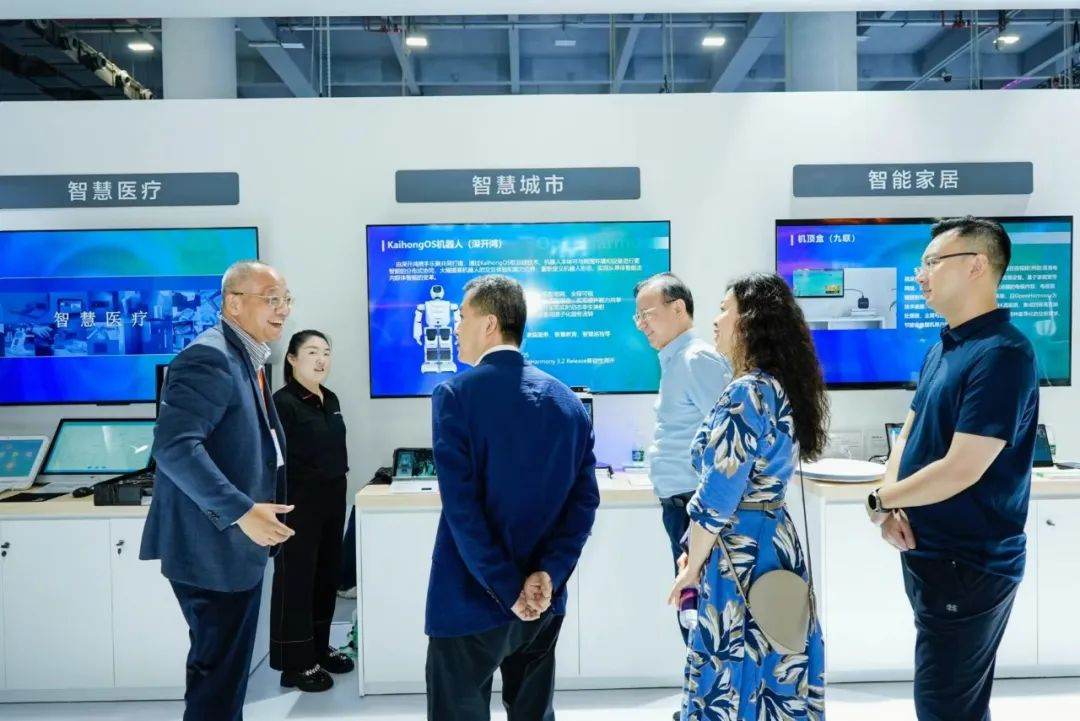 作为鸿蒙生态服务(深圳)有限公司的合作伙伴,深开鸿在鸿蒙生态服务(深圳)有限公司展区集中展示了开鸿安全数字底座在智慧港口、智慧交通、智慧楼宇、智慧多功能杆等领域的应用成果。同时还展示搭载KaihongOS的机器人、工业平板、开鸿控制器等产品,吸引了众多观众的关注驻足。参观者在现场通过操作平板与机器人之间的场景互动,深入感受到KaihongOS所具备的弹性部署、分布式软总线及原子化服务三大核心能力。此次深开鸿与鸿蒙生态服务(深圳)有限公司共同参展,展现了双方在开源鸿蒙生态的创新实力和应用前景,未来将继续在更多领域展开深入合作。