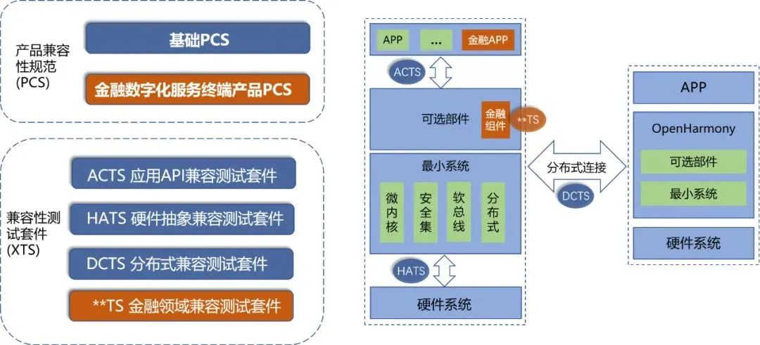 基于《金融数字化服务终端产品兼容性规范》和扩展XTS测试套件,兼容性工作组联合银联、国金测评共同设计OpenHarmony金融服务终端兼容性测试标准流程,分层看护,能力共享,共同保证OpenHarmony金融服务终端生态合规化、标准化。
