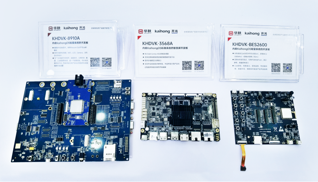 在此次2023慕尼黑上海电子展现场,深开鸿在华秋电子展区带来了KHDVK-3568A、KHDVK-8910A及KHDVK-BES2600三款开发板,这三款开发板在深开鸿多款自研产品和生态伙伴产品中应用。KHDVK-3568A内嵌KaihongOS标准系统的智慧屏开发板,具有四核性能、高能驱动、丰富接口等特性,可实现不同类型的开发需求。KHDVK-8910A和KHDVK-BES2600内嵌KaihongOS轻量系统的开发板,KHDVK-8910A可广泛应用于共享经济、金融支付、能源等场景,KHDVK-BES2600可在工业控制、图形显示、安防监控、传感器网络、智能中控等场景产品开发使用。